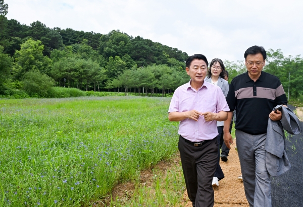 이날 김동근 시장은 송산사지근린공원과 연결된 통로부터 꽃군락지와 텃밭정원 곳곳을 돌며 쉼터와 화장실 등 편의시설의 관리 상태를 종합적으로 살폈다.