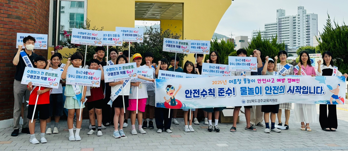 경상북도경주교육지원청(교육장 황영애)은 7월 8일(화) 용황초등학교에서 경주시청, 경주경찰서, 경주소방서 업무 관계자 및 학생회 임원 등 30여명이 참석한 가운데 물놀이 안전사고 예방 캠페인을 전개하였다.