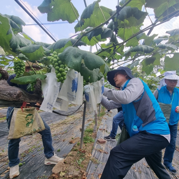 강서구시설관리공단과 포천도시공사 임직원 등 40여명의 자원봉사자들이 내촌면 소학3리에 위치한 색농원에서 포도 봉지씌우기 봉사활동을 펼쳤다.