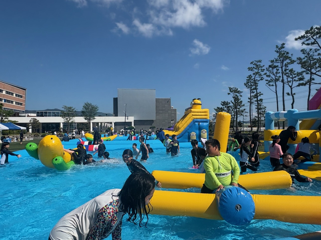 □ 행사장에는 대형 워터풀과 슬라이드 시설 튜브 등의 즐거운 놀이시설이 설치되었으며, 응급구조요원을 상시 배치하고 버블쇼와 마술공연 등을 중간에 운영하여 프로그램을 더욱 다채롭게 하면서 학생들의 탈수와 탈진을 방지하는 안전한 운영이 돋보였다.