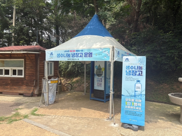 생수 나눔 냉장고는 주요 산책로와 공원 등 야외활동이 많은 곳에 설치돼 무더위에 지친 시민 누구나 1인 1병씩 무료 생수를 이용할 수 있는 폭염 저감 시설이다.