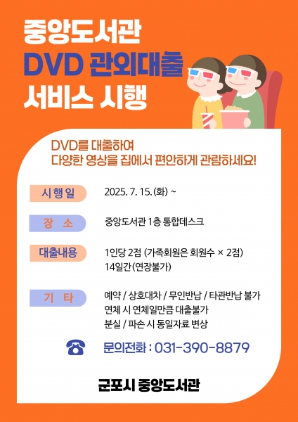 [금요저널] 군포시 중앙도서관은 시민들의 영상자료 접근성과 문화 향유 기회를 확대하기 위해 7월 15일부터 DVD 관외대출 서비스를 시행한다.
