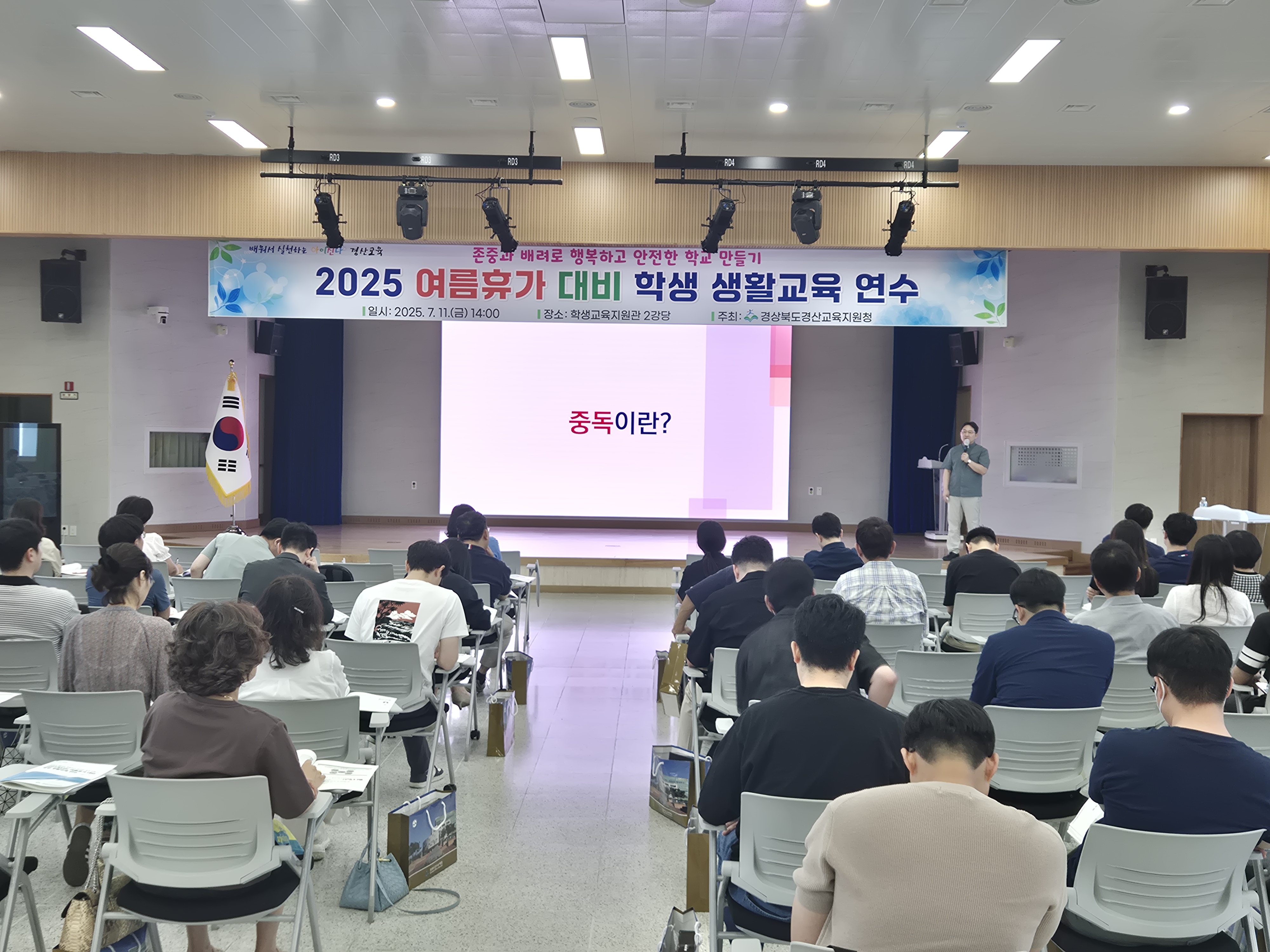 경상북도경산교육지원청 행복학교거점지원센터(교육장 박경화)는 2025년 7월 10일(목) ~ 7월 11(금) 이틀 동안 경산 관내 초·중·고등학교 희망교사를 대상으로 젠테라피네추츄럴힐링센터에서 “행복한 교사되기, 마음돌봄 프로그램”을 실시했다.