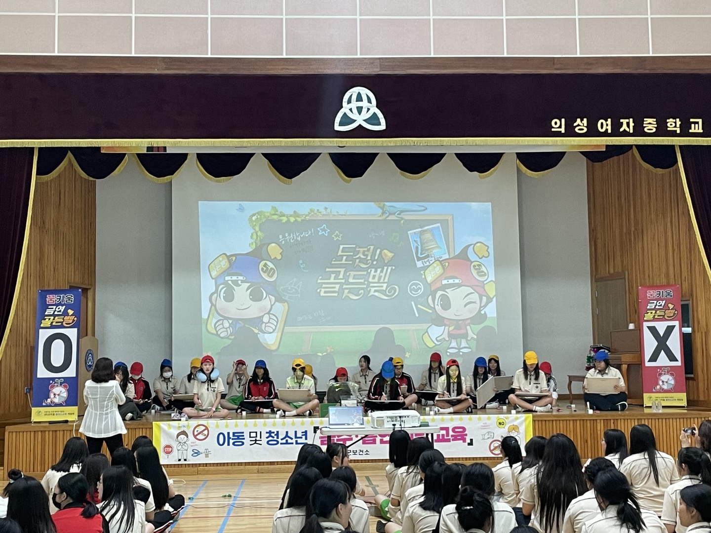 의성여자중학교(교장 최재관)는 7월 9일(수) 학교 강당(국향관)에서 전교생을 대상으로 교과연계 흡연 및 음주 예방교육을 실시하였다. 의성군보건소와 연계하여 ‘꿈키움 플러스교육’에서 방문하여 청소년들이 흡연·음주 등 약물에 노출되기 이전에 건강한 생활습관을 형성하기 위한 예방교육의 일환으로 마련되었다.