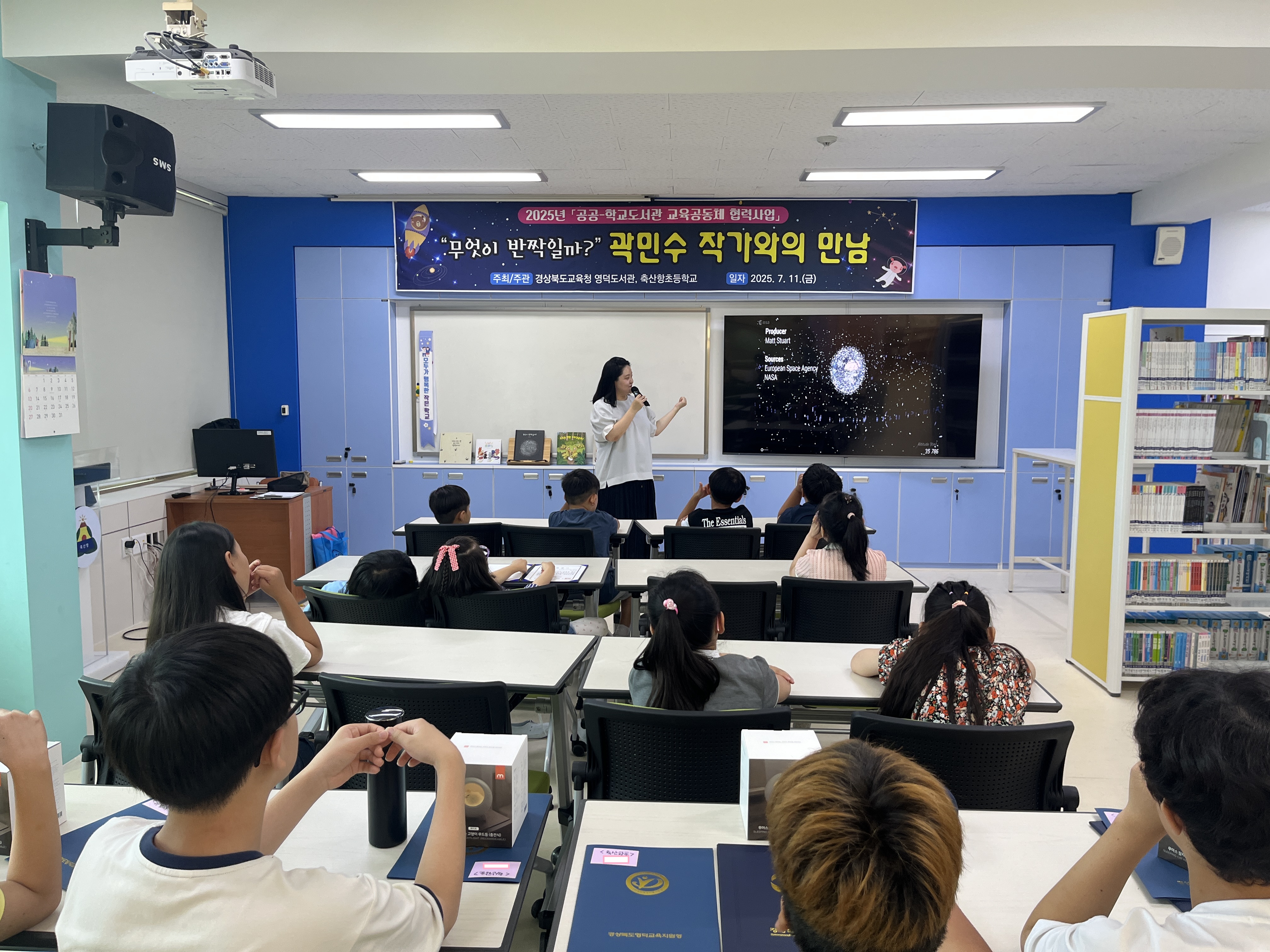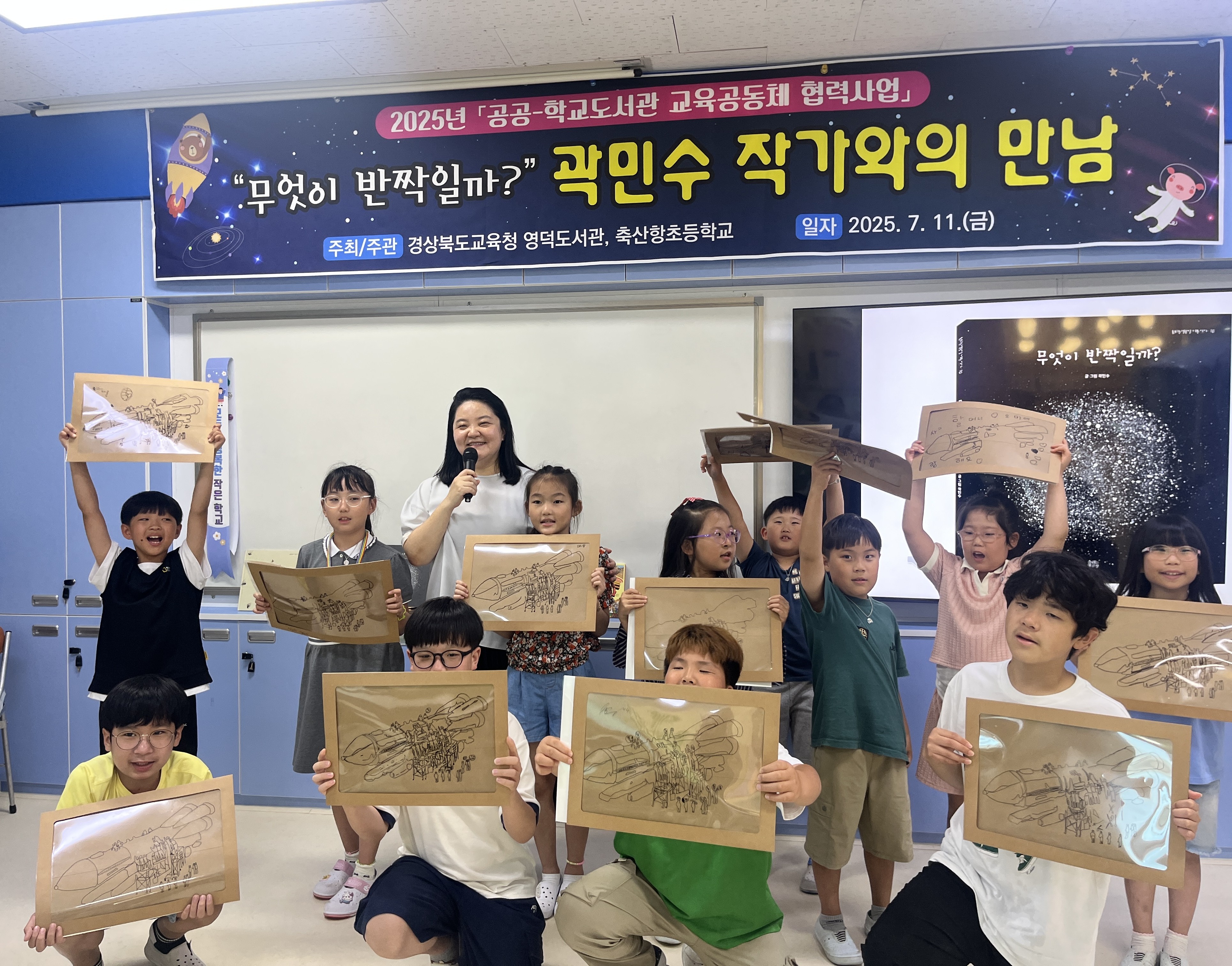 경상북도교육청 영덕도서관(관장 홍경애)은 2025년 「공공-학교도서관 교육공동체 협력사업」의 일환으로 지난 11일 축산항초등학교 전교생을 대상으로 곽민수 그림책 작가와의 만남을 개최하였다.