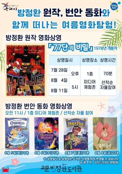 [금요저널] 구리시 교문방정환도서관은 오는 7월 28일부터 8월 11일까지 누구나 자유롭게 관람할 수 있는 특별 영화 상영 프로그램 ‘방정환 선생의 원작 & 번안 동화와 함께 떠나는 여름 영화 탐험’을 운영한다.