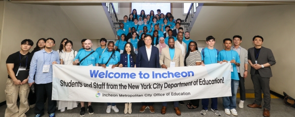 [금요저널] 인천광역시교육청은 14일 ‘인천-뉴욕 고교생 국제교류 프로그램’에 참여하기 위해 방한한 뉴욕 방문단을 환영하는 행사를 열었다.