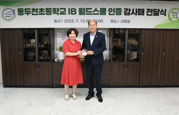 이번 감사패 전달식은 지난 6월, 동두천초등학교가 경기북부에서 두 번째로 국제 공인 교육과정인 IB 월드스쿨 인증을 획득한 데 따른 감사의 뜻을 전하고자 마련됐다.