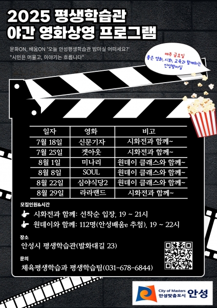 안성시, 2025년 평생학습관 하절기 야간 영화상영 프로그램 개최