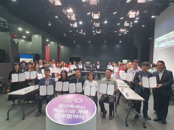 용인특례시 미디어센터에서 열린 이번 협약식에는 김희정 용인교육지원청 교육장, 이상일 용인특례시장, 협약 참여교 학교장이 참석했다.