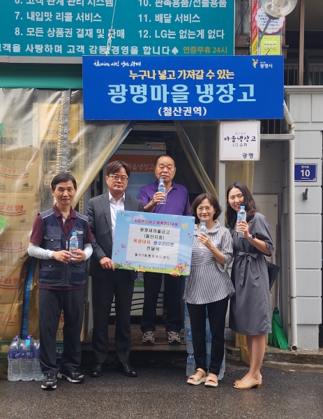 광명새마을금고 철산지점, 무더위쉼터·마을공유냉장고에 생수 1천 병 기증