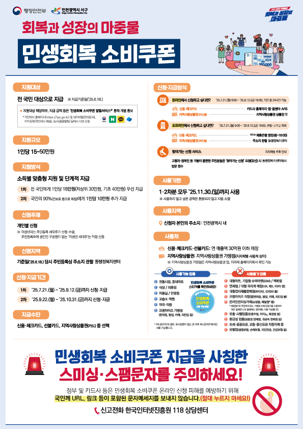 인천 서구, 민생회복 소비쿠폰 신청 ‘스미싱 주의’