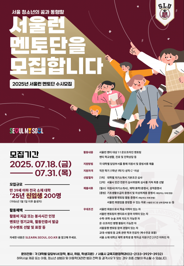 서울시는 8월 1일까지 대학별 추천을 받아 전문가 심사를 통해 멘토를 최종 선발할 예정이다.