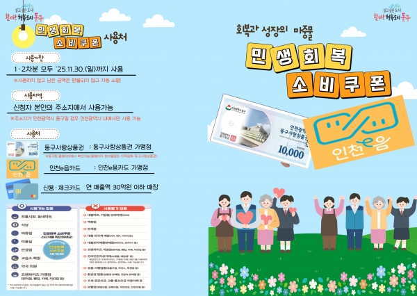 인천 동구, 민생회복 소비쿠폰 1차 지급.15만~40만원