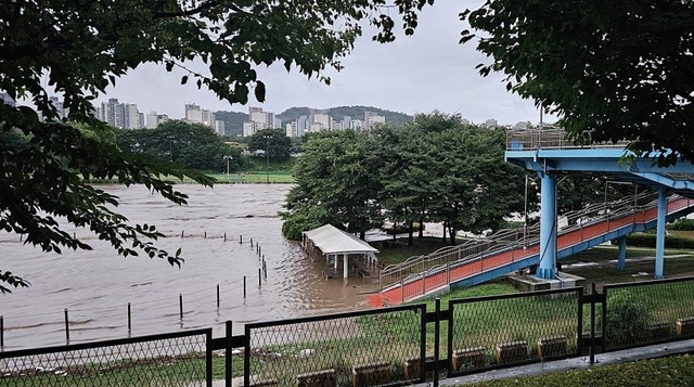 구리시 등에 따르면 20일 오전 5시 20분께 구리 왕숙천 수위 상승으로 수변공원 전역이 침수돼 수변공원 일대 통제중이다.