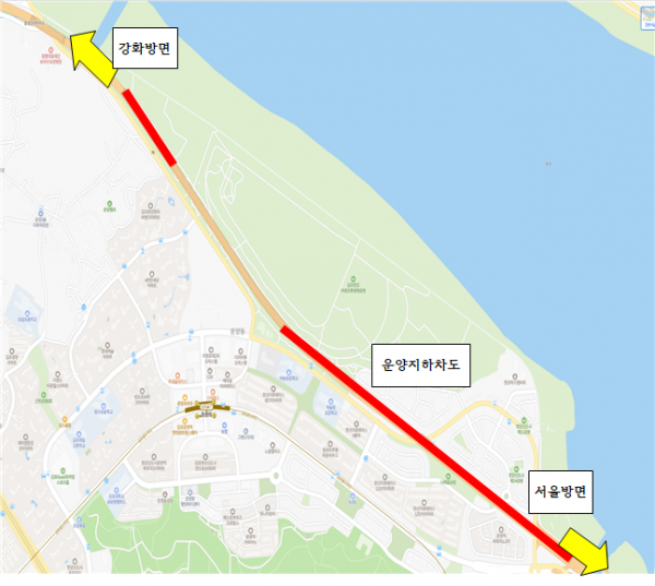 김포시에 따르면 김포한강로 노선의 운양지하차도에 대해 약 3억원의 예산을 투입해 터널 조명 400여 개를 교체하는 공사로 7월 24일부터 8월 2일까지 야간시간에 서울과 강화 방향 차로 일부를 순차적으로 통제할 계획이다.