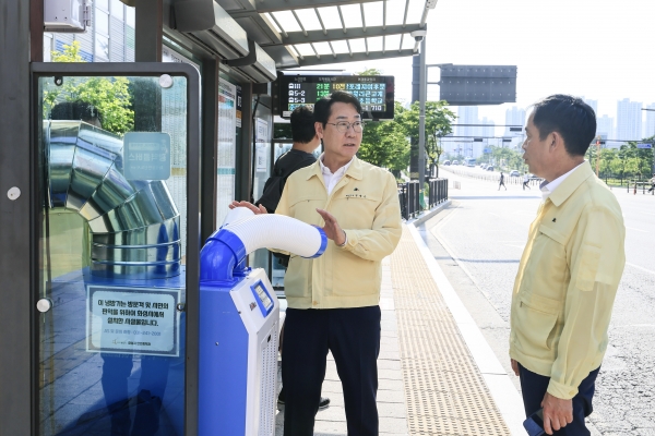 이어 정 시장은 영천동에 설치된 스마트 쉘터 정류장으로 이동해 야외용 냉방기 정상 작동 여부와 실내 공기질 및 적정온도 여부 등을 직접 확인하고 정류장을 이용 중인 시민들에게 불편사항은 없는지 의견을 듣기도 했다.