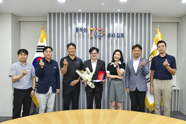 [금요저널] 김병수 김포시장이 23일 향산리 힐스테이트리버시티 1단지, 2단지 입주자대표위원회로부터 시내버스 70C번 정규노선 신설의 적극 추진에 대한 감사의 표시로 주민들의 마음을 담은 감사패를 전달 받았다고 밝혔다.