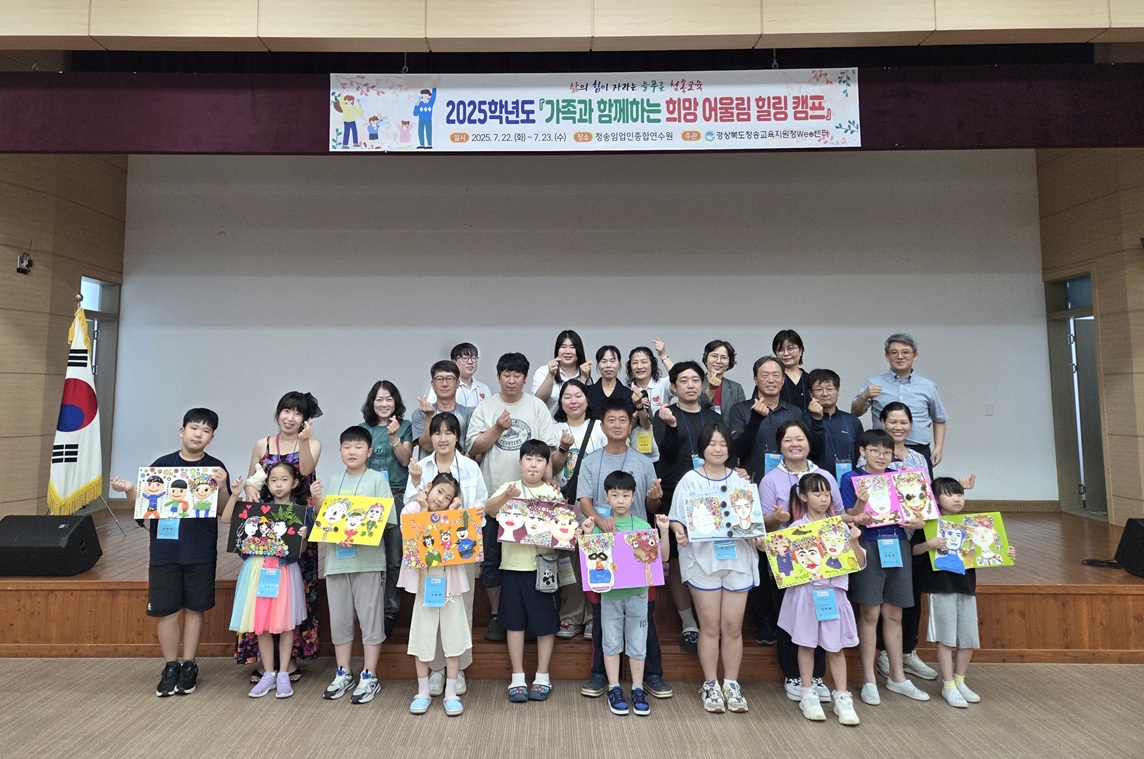 □ 경상북도청송교육지원청(교육장 신덕섭) Wee센터에서는 7월 22일(화)~7월 23일(수) 1박2일 동안 청송산림조합중앙회 임업인종합연수원에서 관내 초등학생 10가족(총 30명)을 대상으로 따뜻한 치유와 행복을 위한 「가족과 함께하는 희망 어울림 힐링 캠프」를 성공적으로 운영했다.