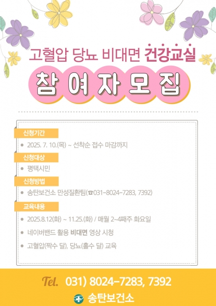 교육 참여를 희망하는 시민은 송탄보건소 만성질환팀으로 전화 신청하면 된다.