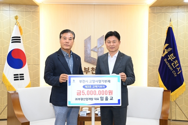 [금요저널] 부천시는 지난 25일 ㈜부광산업개발 임을교 대표가 고향사랑기부금 500만원을 기탁했다고 28일 밝혔다.