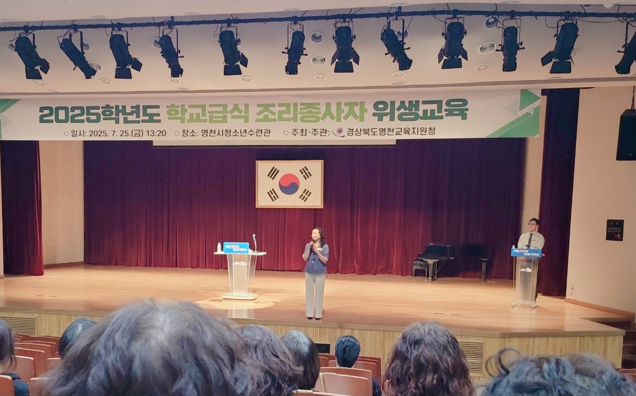○ 영천교육지원청(교육장 신봉자)은 7월 25일 영천시청소년수련관에서 관내 조리종사자 150여 명을 대상으로 2025년도 학교급식 조리종사자 위생교육을 실시하였다.