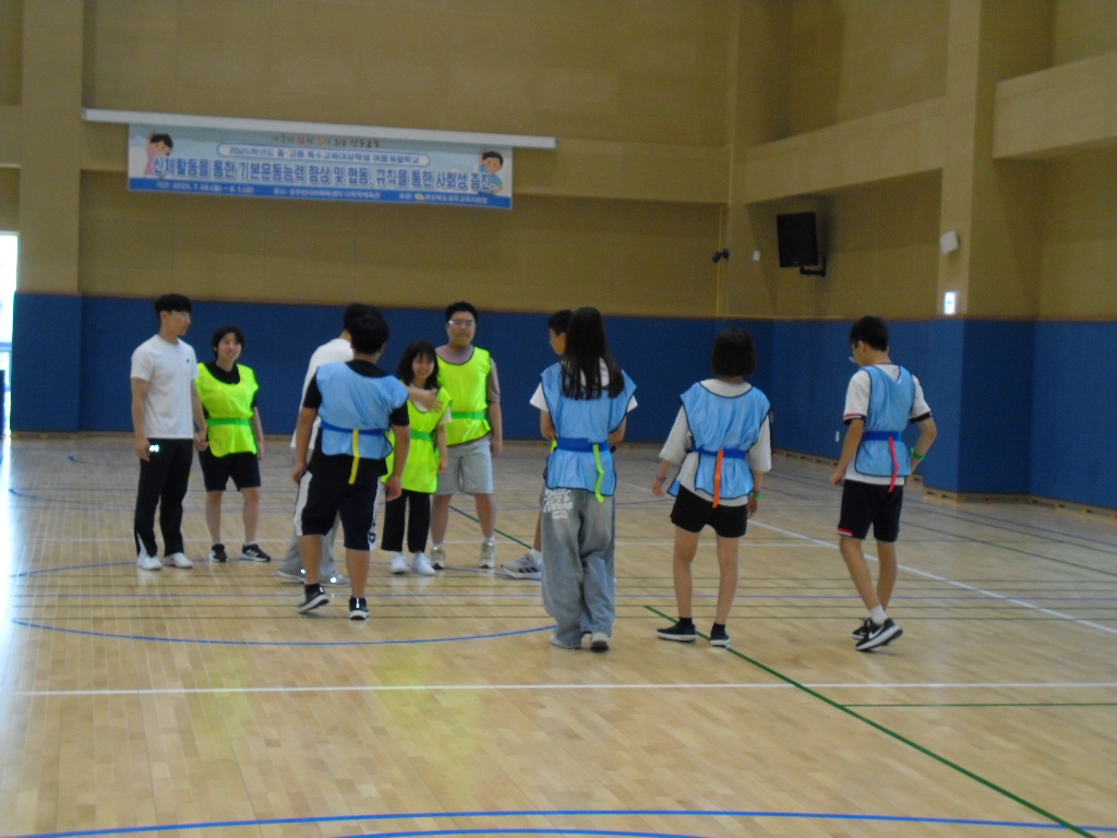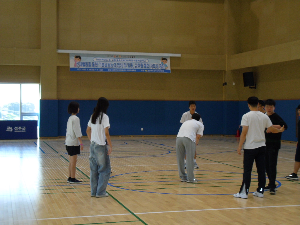 □ 성주교육지원청(교육장 정수권) 특수교육지원센터는 7월 28일부터 8월 1일까지 성주반다비체육센터 다목적체육관에서 『신체활동을 통한 기본운동능력 향상 및 협동, 규칙을 통한 사회성 증진』이라는 주제로 중‧고등 특수교육대상학생 11명을 대상으로 여름계절학교를 진행하게 된다.