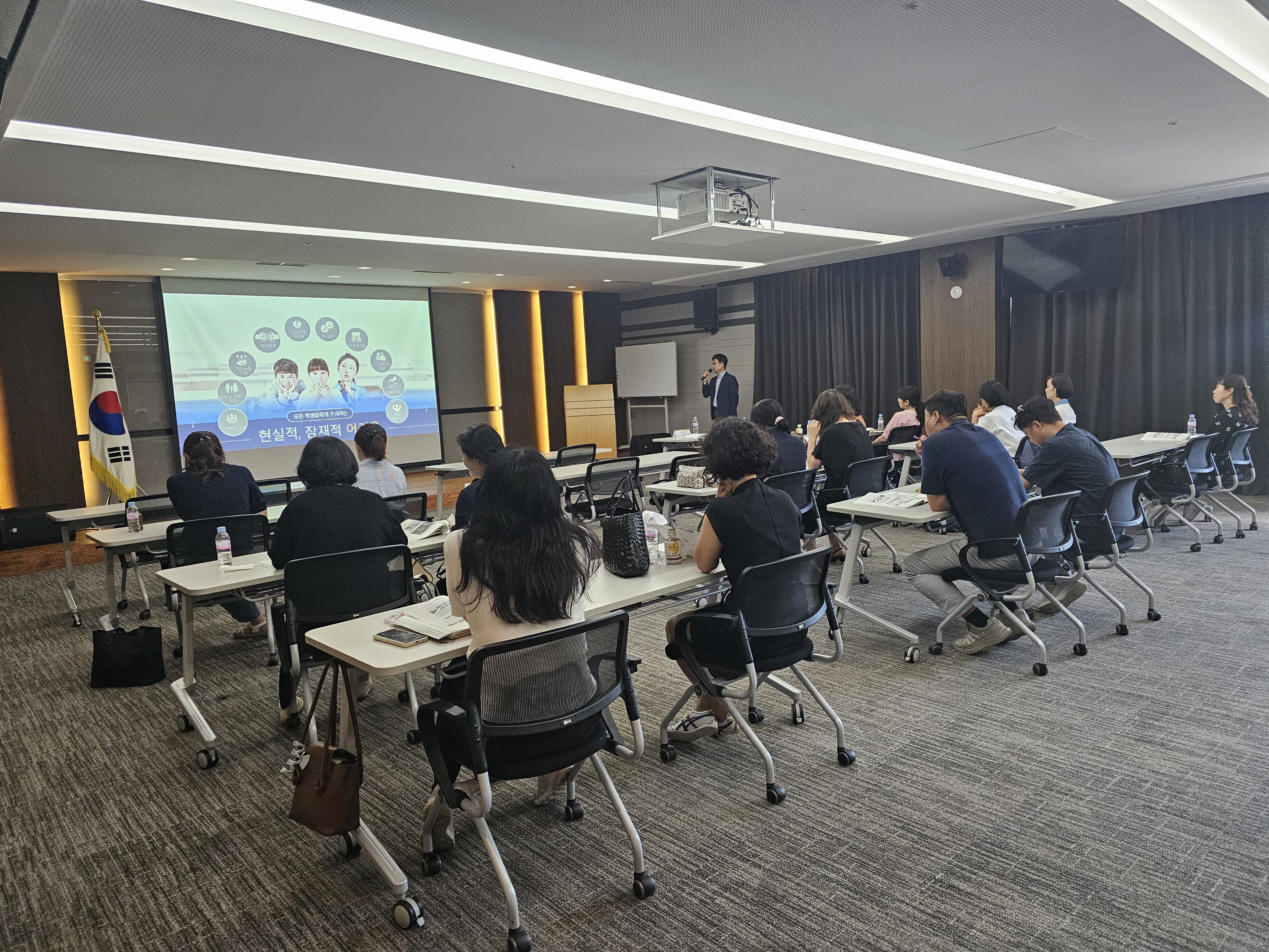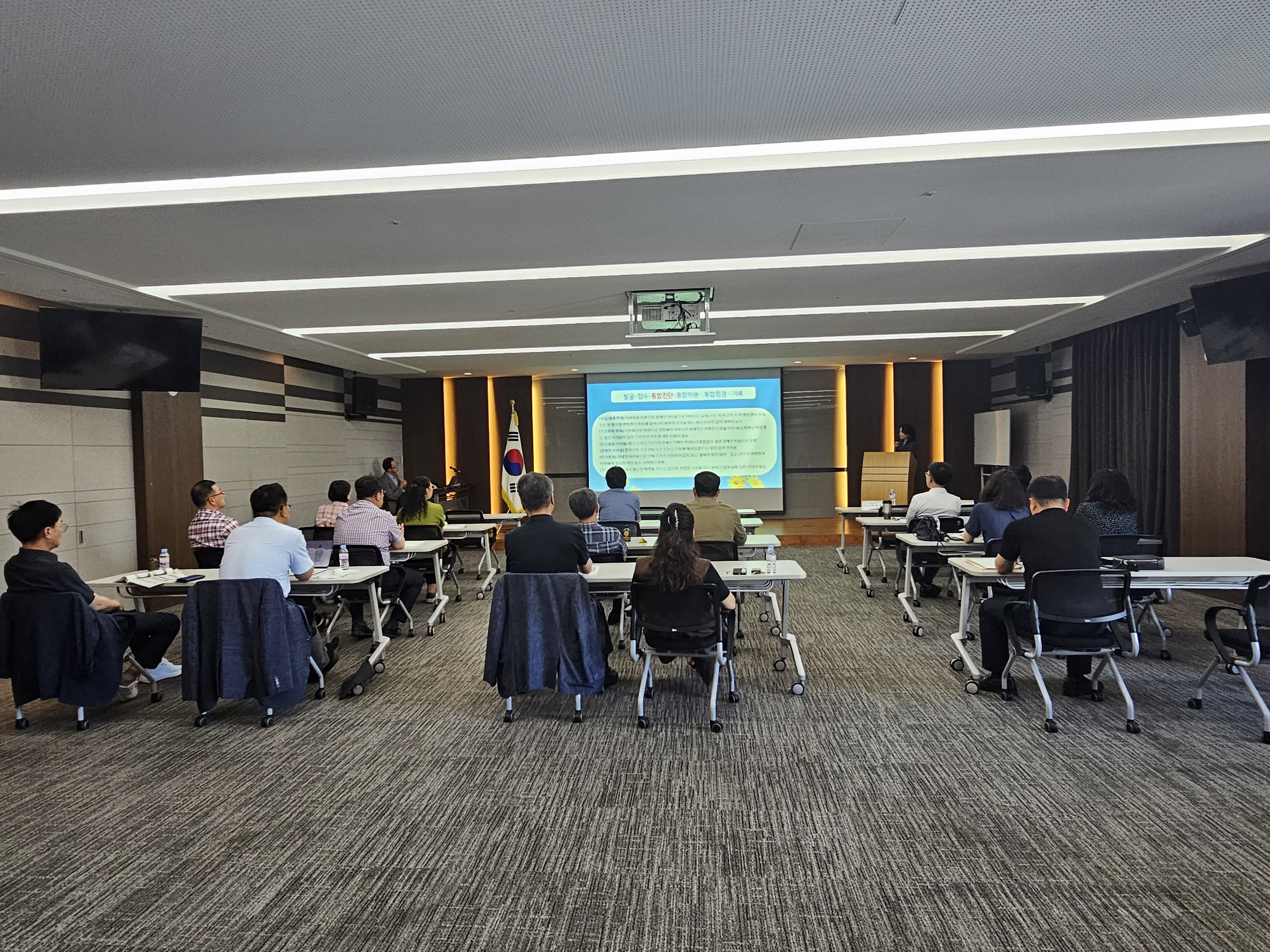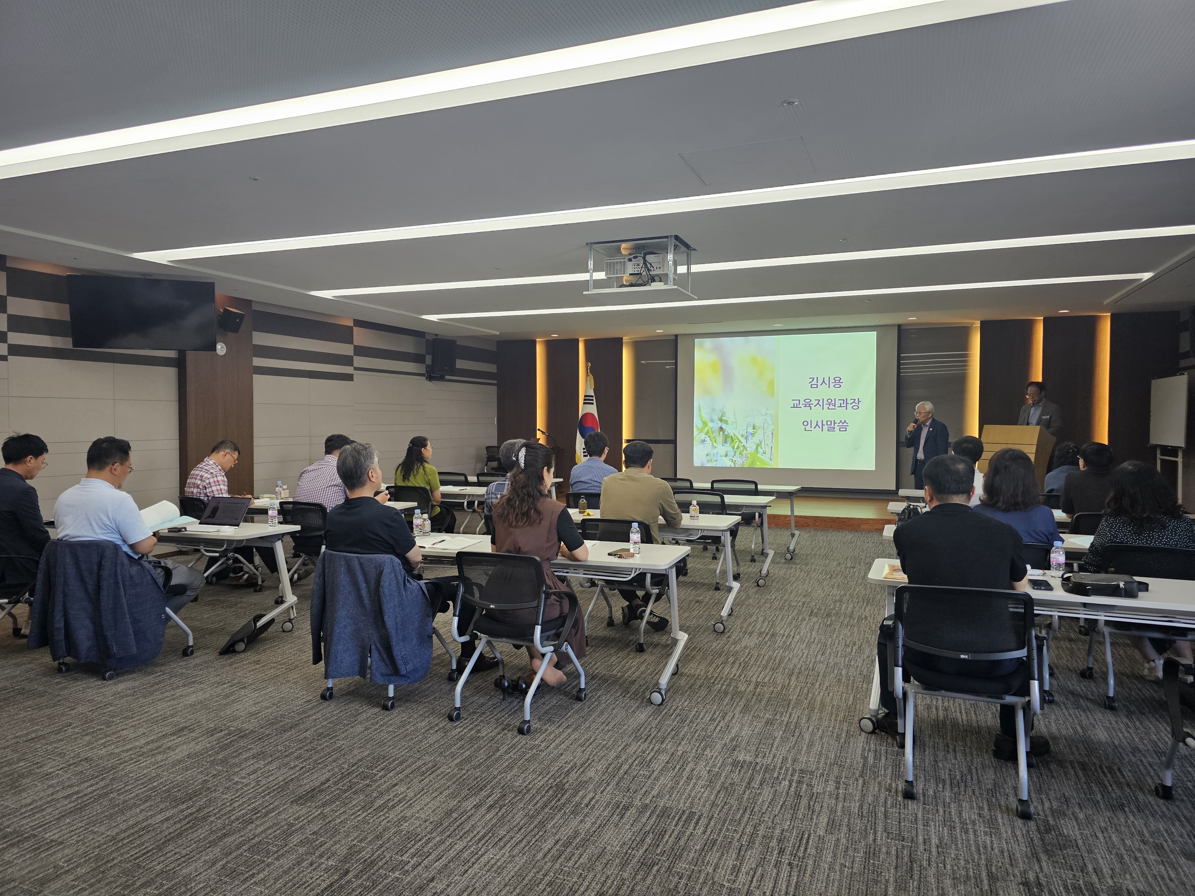 □ 관내 중,고등학교 행정실장을 대상으로 “1부: [발굴]-[접수]-[사례진단]-[지원]-[점검]-[기록]를 통한 학생맞춤통합지원의 이해”, “2부: 나는 어떤 행정을 하고 있는가?”라는 주제로 진행하였으며, 연수는 불국중학교 유현정 교감, 천안교육지원청 김기세 행정과장이 맡아주셨다.