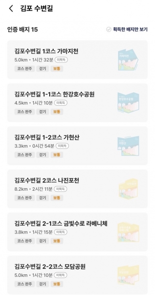 서비스를 이용하려면 트랭글 앱에서 '추천 코스북' 메뉴에 접속해 '김포시' 또는 '김포수변길'을 검색하고 코스북을 즐겨찾기에 추가하면 된다.