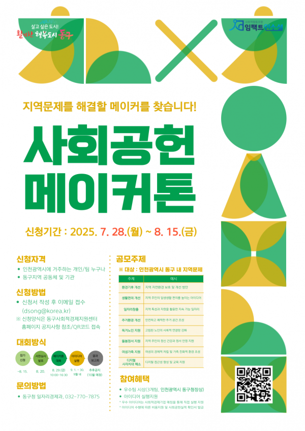 [금요저널] 인천 동구는 지역문제를 함께 해결할 ‘실행형 사회공헌 메이커톤’ 참가자를 모집한다고 밝혔다.