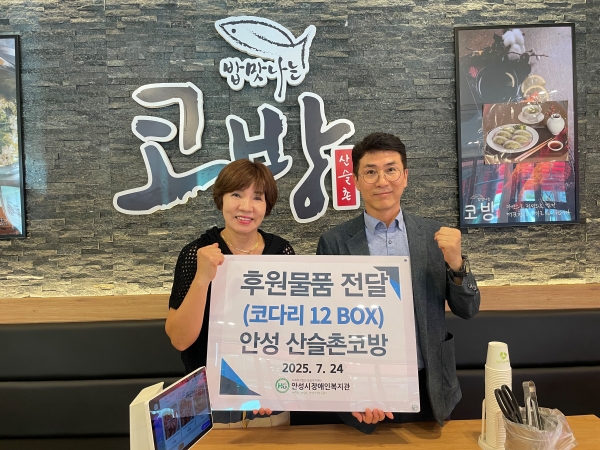 이번 후원은 산슬촌코방이 2024년 5월 안성점 오픈 이후 꾸준히 실천해온 지역 상생과 나눔 활동의 일환으로 지역사회 소외계층의 건강한 식생활 지원을 목적으로 진행됐다.
