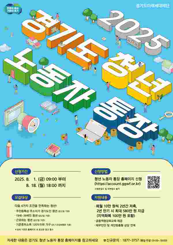 [금요저널] 부천시는 청년들의 자립 기반 강화를 위해 ‘2025년 경기도 청년 노동자 통장’ 참여자 166명을 오는 8월 1일부터 18일까지 모집한다고 31일 밝혔다.