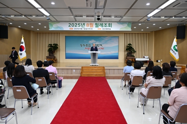 [금요저널] 동두천시는 1일 시청 대회의실에서 8월 명예시장으로 위촉된 윤문희 동두천중·고등학교 총동문회장과 전 직원이 참석한 가운데 월례조회를 개최했다.
