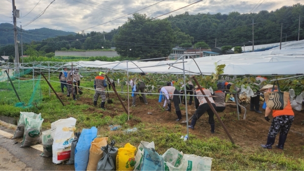 이들은 폭염 속에서도 침수 피해를 입은 농경지를 정리하고 쌓인 토사를 제거하는 등 복구 작업에 구슬땀을 흘렸다.
