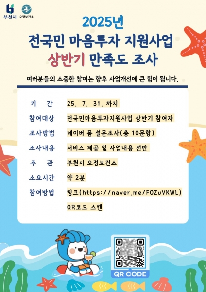 김은옥 부천시보건소장은 “이번 만족도 조사를 통해 시민들이 심리지원 서비스에 높은 신뢰와 만족을 보이고 있다는 점을 확인했다”며 “앞으로도 이용자 의견을 반영해 맞춤형 심리상담 체계를 더욱 강화해 나가겠다”고 말했다.