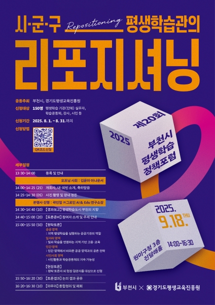 [금요저널] 부천시는 9월 18일 오후 2시, 원미구청 진달래홀에서 ‘2025년 제20회 부천시 평생학습 정책 포럼’을 연다.