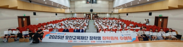[금요저널] 오산교육재단은 지역 학생들의 꿈과 도전을 응원하기 위해 ‘2025년 장학증서 수여식’을 열고 특기·대학교 진학·행복기숙사 입사 장학생 279명에게 장학증서를 전달했다.