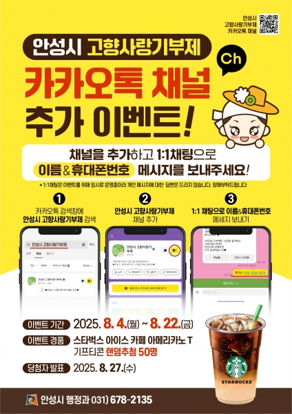 안성시 고향사랑기부, 카톡 채널 친구되고 커피받는 이벤트 추진