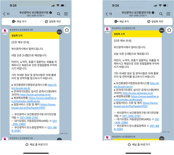 국립환경과학원이 발표하는 '나쁨 이상' 예보는 전날 오후 5시 예보만 제공했으나, 8월부터는 당일 오전 5시 예보 결과까지 포함해 총 2차례 발송된다.