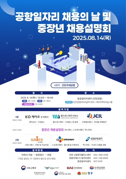 구 관계자는 “항공산업은 인천 중구의 대표 산업”이라며 “관련 분야 취업을 희망하는 구직자들의 적극적인 관심과 참여를 바란다”고 밝혔다.