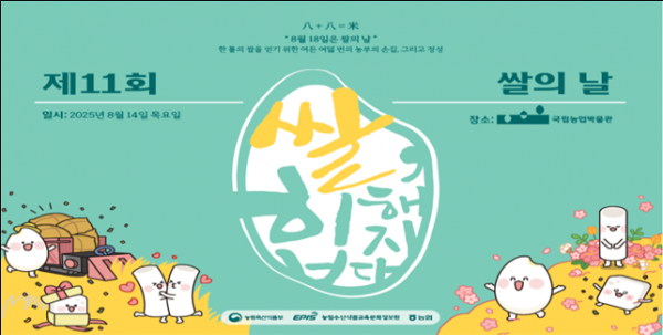 [금요저널] 농림축산식품부는 오는 8월 18일 제11회 쌀의 날을 맞아 쌀의 우수성을 알리고 쌀 중심의 식습관 확산과 쌀 소비 활성화를 위해 8월 14일에 수원 국립농업박물관에서 기념행사를 진행한다.