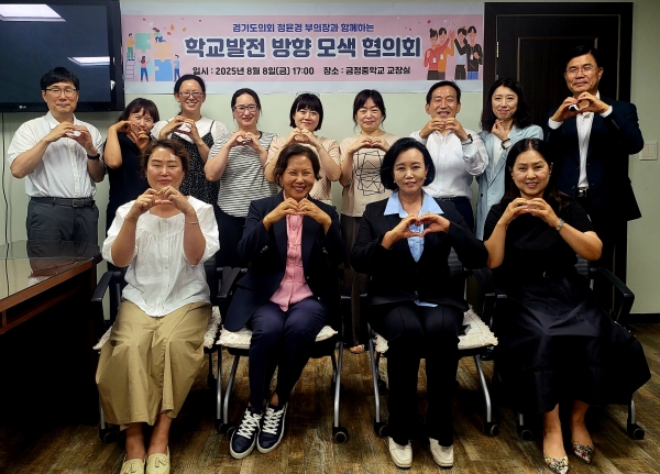 [금요저널] 경기도의회 정윤경 부의장은 8월 8일 금정중학교 교장실에서 교직원 및 학부모들과 함께 ‘학교 발전 방향 모색 협의회’에 참석해 학급 수 감소와 교내 시설 개선 등 주요 현안을 논의했다.