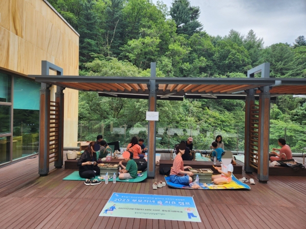 이날 참가자들은 숲길 걷기 명상, 부모-자녀 레크리에이션, 스트레스 완화 활동, 보드게임 등을 진행하며 자연 속에서 심신의 안정을 도모했다.