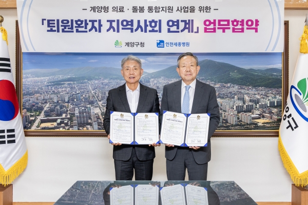 [금요저널] 인천광역시 계양구는 11일 지역책임의료기관인 인천세종병원과 ‘퇴원환자 지역사회 연계사업 업무협약’을 체결했다고 밝혔다.