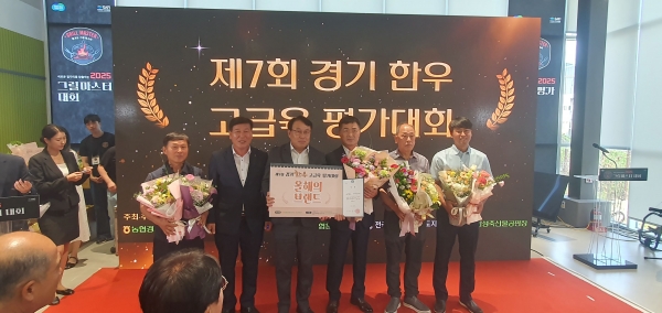 [금요저널] 가평군은 지난 8일 용인시에서 열린 ‘2025년 제7회 경기 한우 고급육평가대회’에서 정웅진 농가가 장려상을, 가평축협 잣고을한우가 브랜드상을 수상했다고 12일 밝혔다.
