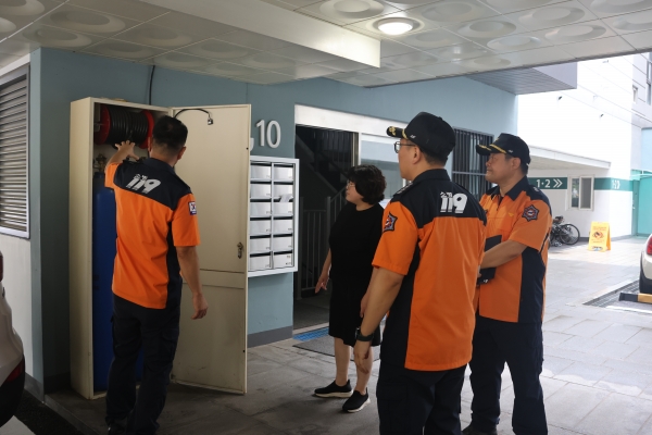 특히 화재 발생 시 피난 방법 변경, 방화문 닫힘 유지, 피난계단 장애물 적치 금지 등 주민 안전수칙을 안내하고 홍보자료를 배부했다.