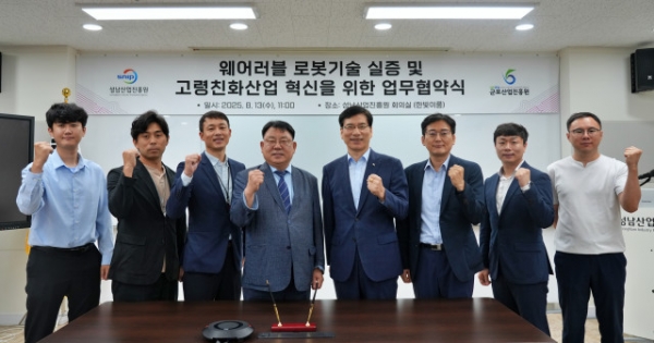 [금요저널] 성남산업진흥원은 13일 킨스타워에서 군포산업진흥원과 초고령사회 대비 웨어러블 로봇 기술 실증 및 고령친화산업 활성화를 위한 업무협약을 체결했다.