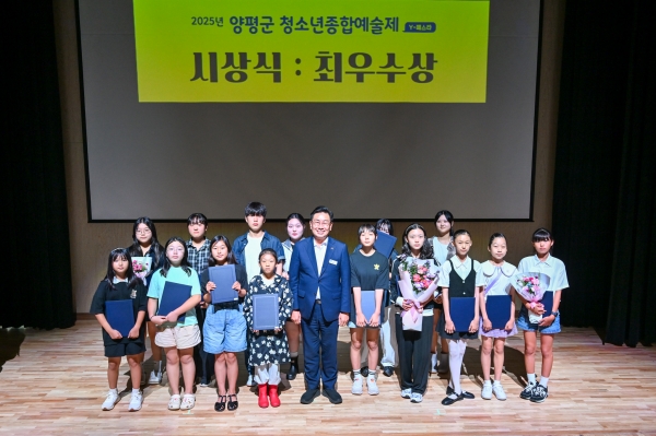 시상식에서는 지난 7월 9일 열린 ‘2025 양평군 청소년종합예술제’에서 음악, 무용, 사물놀이, 문예, 대중문화 등 5개 부문 14개 종목에 참가한 465명의 청소년 가운데 최우수상, 우수상, 장려상을 수상한 청소년들이 무대 위에서 한 명씩 상을 받으며 축하와 박수를 받았다.