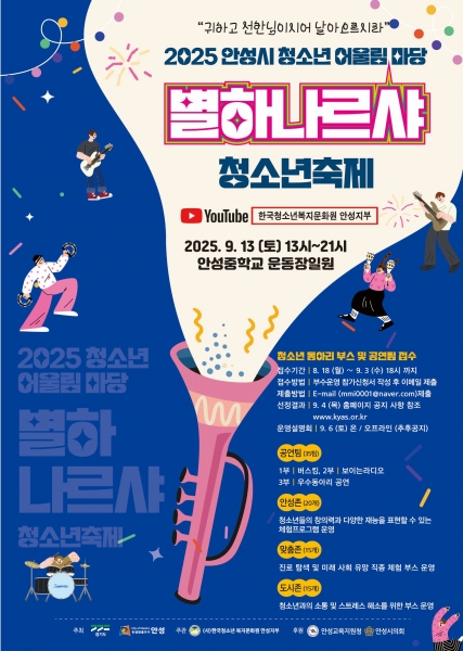 안성시, 2025 안성시 청소년어울림마당 ‘별하나르샤’ 청소년축제 체험부스 및 공연팀 대모집