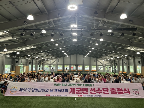 한편 제52회 양평군민의 날 체육대회는 오는 9월 11일 물맑은양평종합운동장에서 개최되며 개군면은 축구, 족구, 게이트볼, 육상, 테니스, 탁구, 배드민턴, 파크골프 8개 종목에 104명이 참가해 선전을 펼칠 계획이다.
